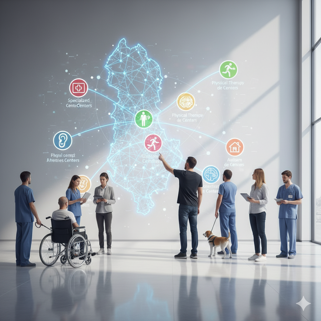 Kjo hartë interaktive u mundëson pjesëmarrësve dhe kujdestarëve të gjejnë shpejt dhe me lehtësi të gjitha qendrat dhe institucionet e specializuara në të gjithë vendin. Qëllimi është eliminimi i barrierave gjeografike dhe sigurimi i aksesit në shërbimet thelbësore.